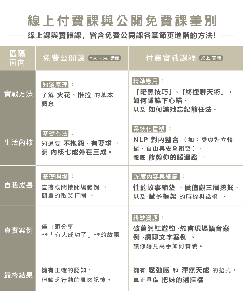 課程提供成為真正高價值男人的方法,不只是把妹,